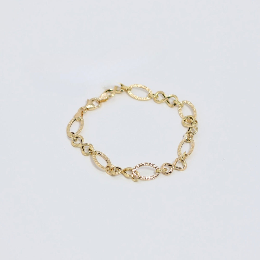 The Kieran Link Bracelet offers a blend of classic and modern design. It features a series of elongated, textured links connected by smaller, smoother links. This bracelet adds a touch of sophisticated detail to any look.