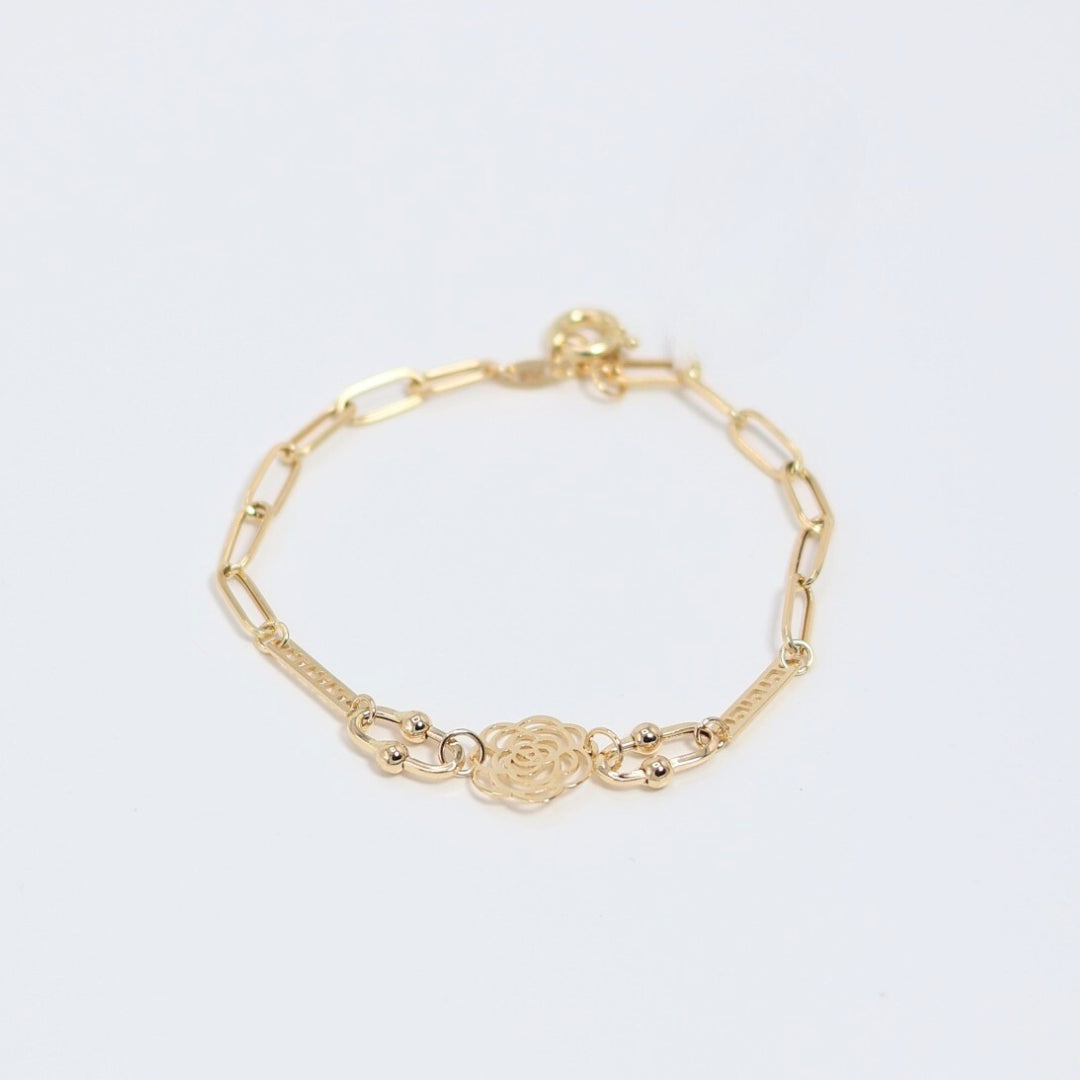 The Rose Link Bracelet adds a touch of romantic detail to a classic chain design. A central rosebud charm serves as a sweet focal point, making this bracelet a charming and feminine accessory.