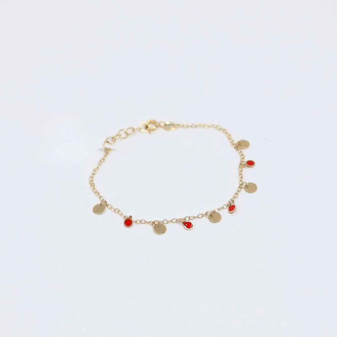 The Scarlett Charm Anklet adds a playful touch of color and movement to your wrist. This bracelet is perfect for adding a fun and eye-catching accent to any outfit.