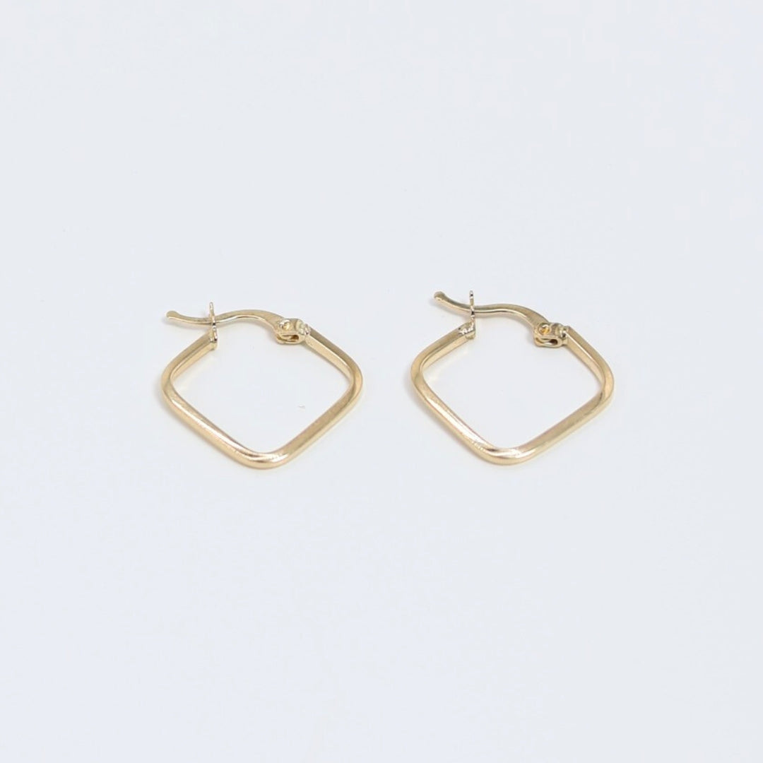 The Zoey Earrings feature minimalist hoop earrings with a slightly squared shape and gently rounded corners, offering a subtle and modern geometric design.